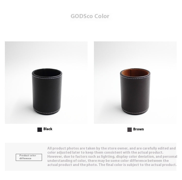 Product information: Color: Black Material: Leather Size: Diameter 8.0cm * height 10.8cm Shape: round